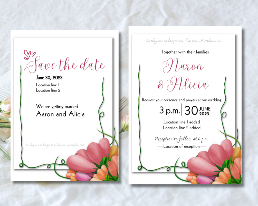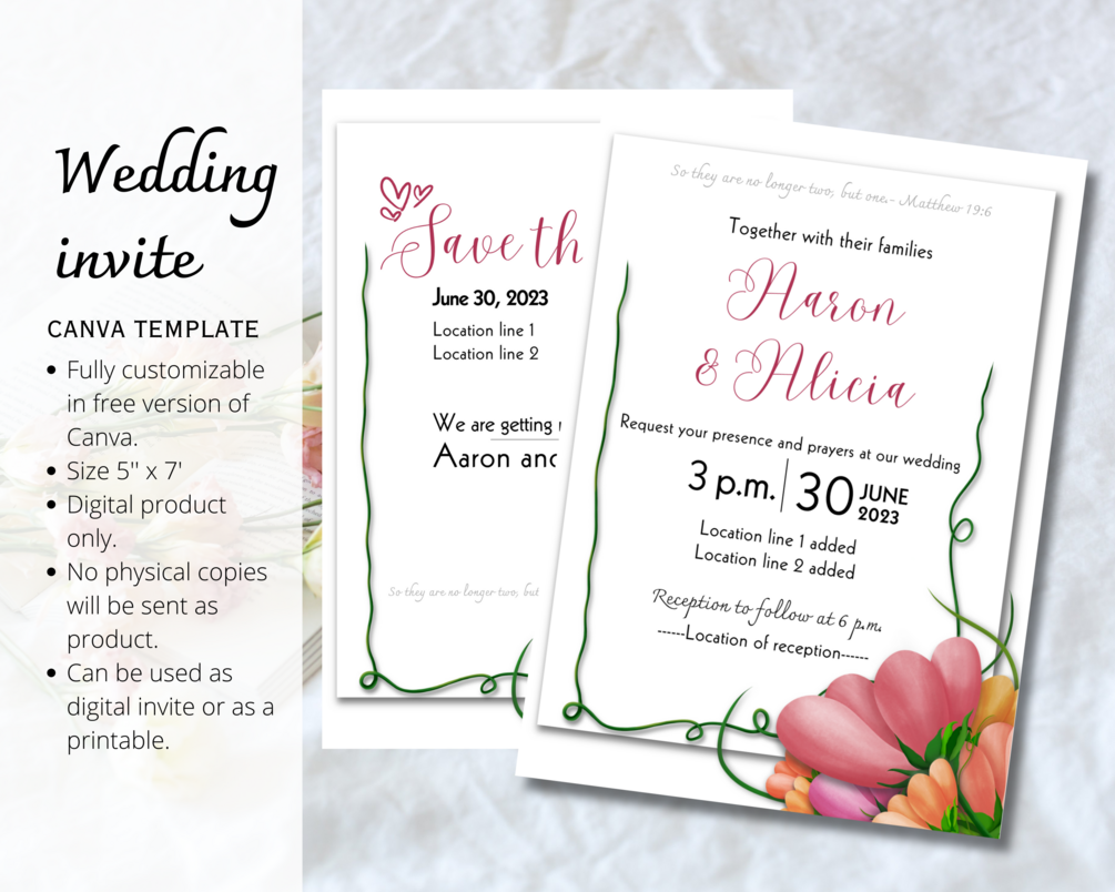 Elegant Simple Wedding Invitation. Editable Canva Template. Customizable. Save the Date. Verse. Floral art. Minimalist. Digital. Printable.